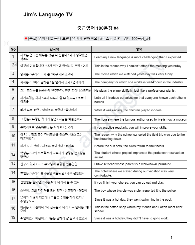 [Page 1] [중급] 영어 매일 듣다 보면 | 영어가 편해져요 | #리스닝 훈련 | 영어 100문장_#4