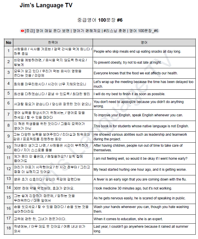 [Page 1] [중급] 영어 매일 듣다 보면 | 영어가 편해져요 | #리스닝 훈련 | 영어 100문장_#6