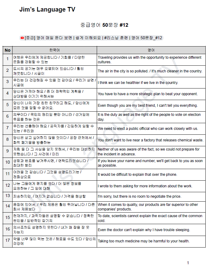 [Page 1] [중급] 영어 매일 듣다 보면 | 쉽게 이해되요 | #리스닝 훈련 | 영어 50문장_#12