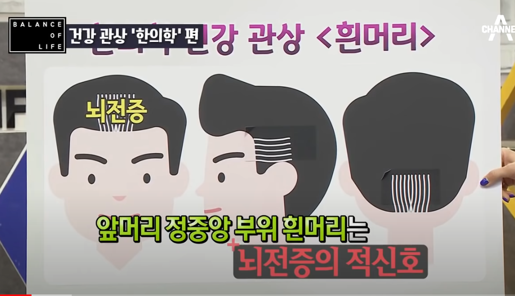 흰머리가 옆머리 근처에 뭉치면 고혈압과 연결될 수 있습니다.